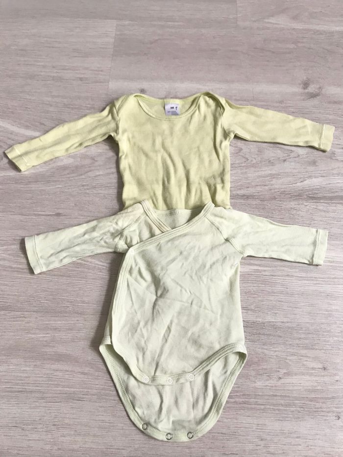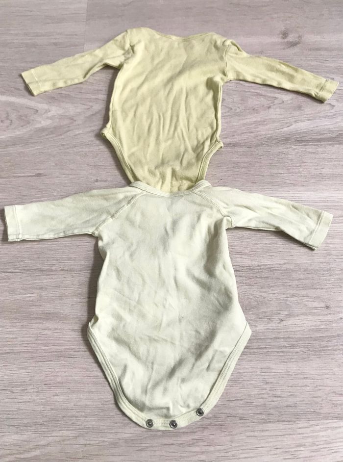 Bodies verts clairs Manches longues L’un d’eux s’ouvre par pressions à l’avant Col jauni et petite tâche (photos)