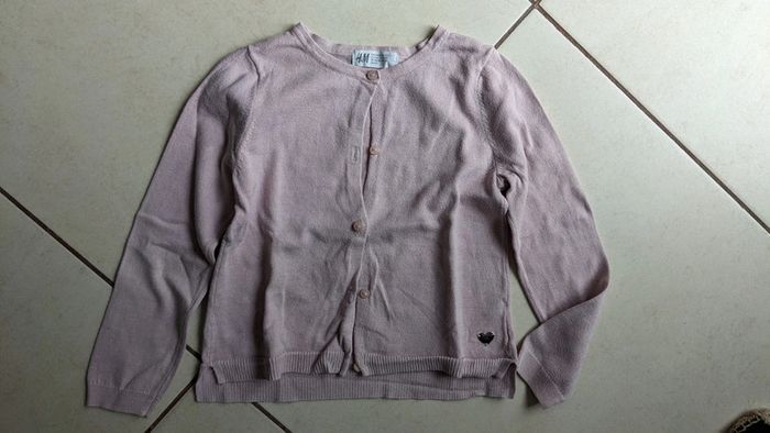 Gilet fille taille 6 ans rose clair marque H&M avec bouton petit cœur argenté cousu en bas Mes autres annonces du même âge #joeypotter91_fillesixans