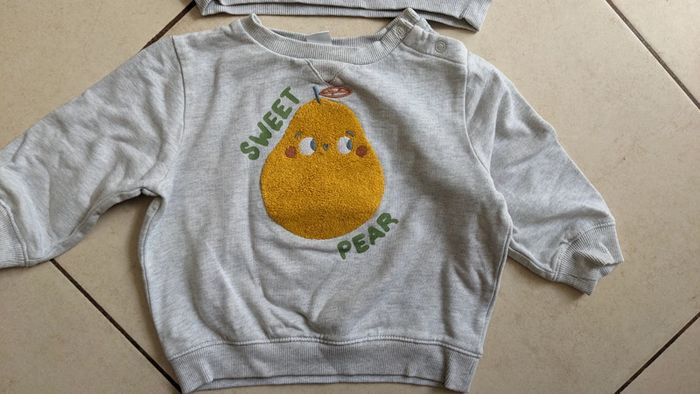 Lit de 2 sweats garçon marque Tex taille 18 mois motif poire inscription sweet pear. Mes autres annonces du même âge #joeypotter91_garçondixhuitmois [Caisse panda roux]