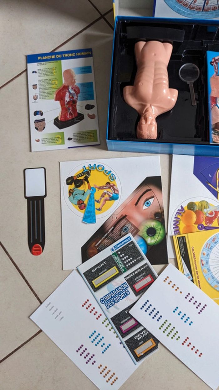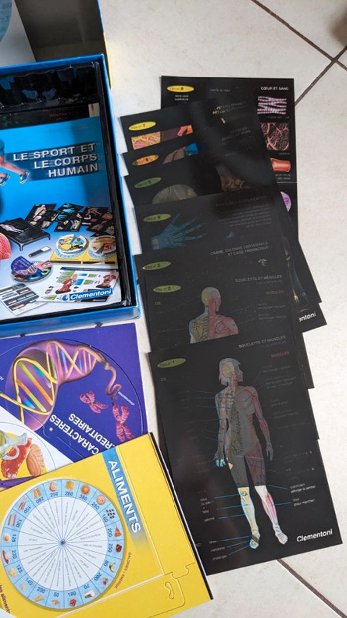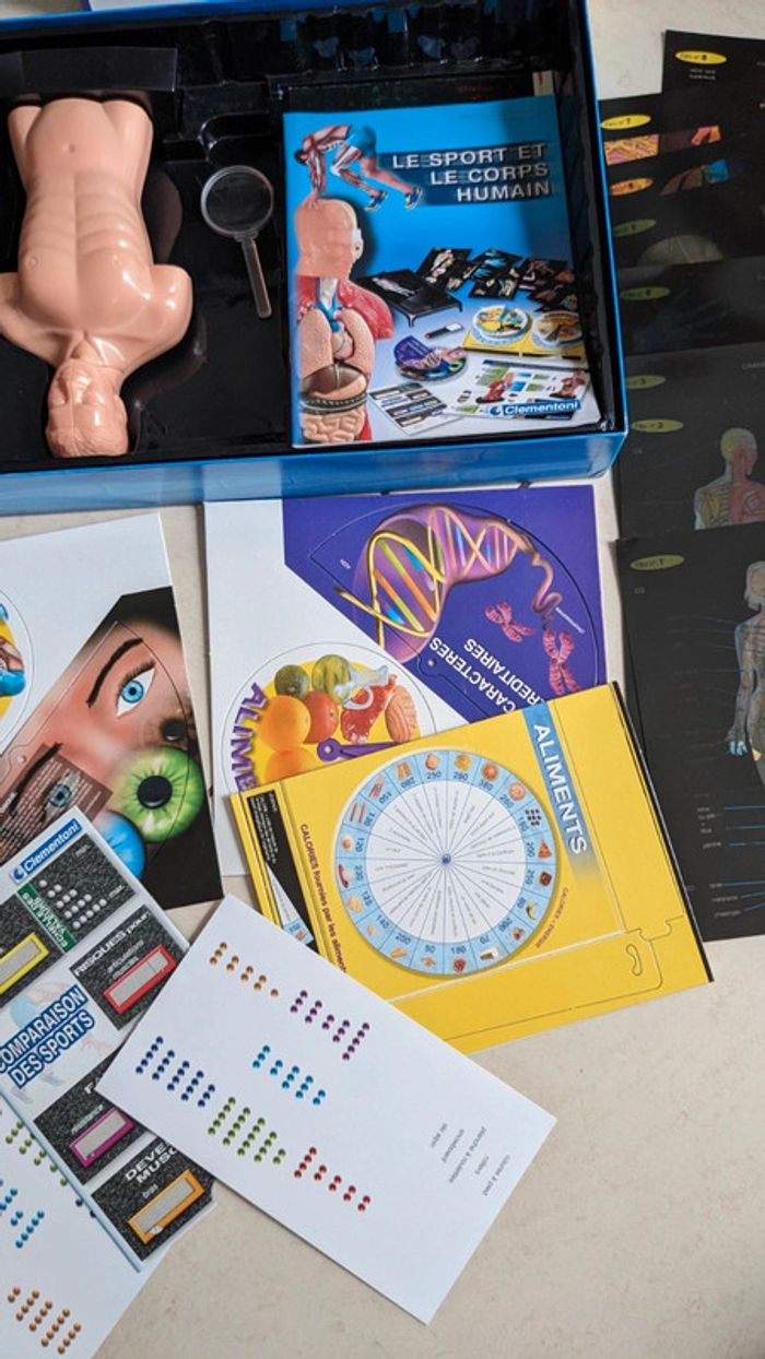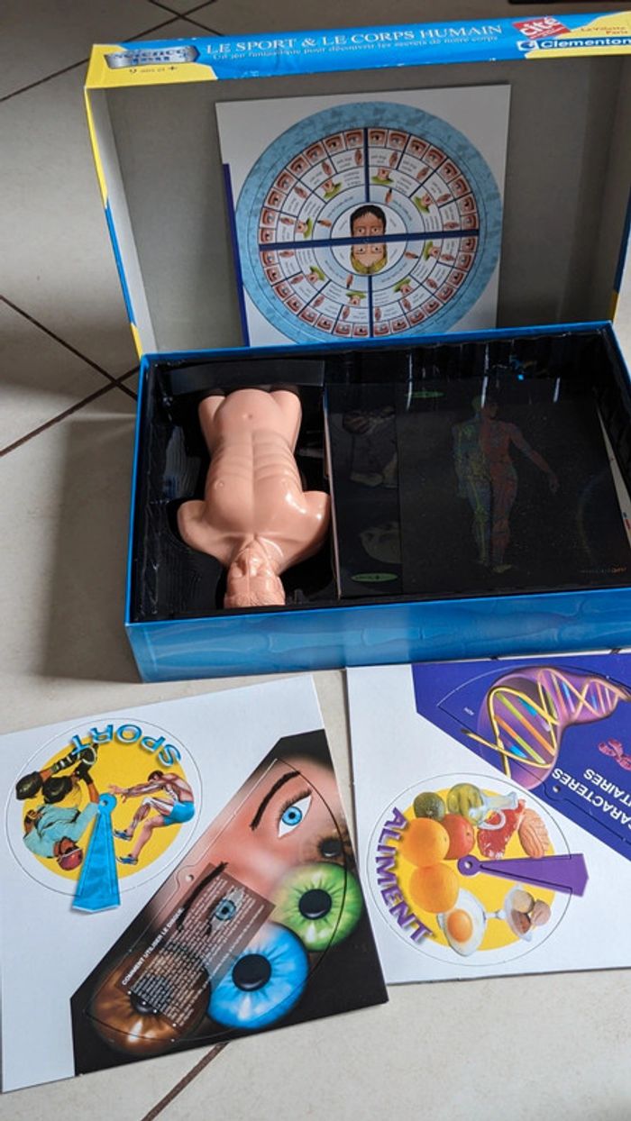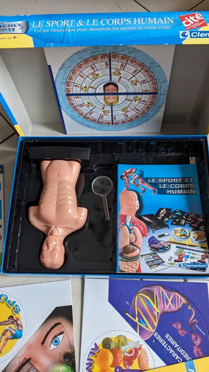 Coffret le sport et le corps humain clementoni Cité des sciences et de l'Industrie la Villette Paris sciences et jeux Un jeu fantastique pour découvrir les secrets de notre corps Jeu élaboré par la Cité des Sciences et de l’Industrie de La Villette à Paris. À partir de 9 ans. Complet et en parfait état. La boîte est un petit peu abîmée mais le jeu est neuf à l'intérieur voir photos.