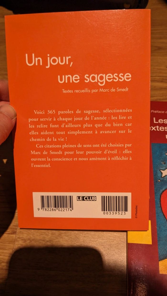 Lot de 5 livres bien-être méditation aller mieux composé de - un jour une sagesse 365 paroles de sagesse - les plus beaux textes pour célébrer une union - confidences de guérisseur soigner guérir méditer - l'envie d'aller mieux / apprendre à surmonter ses angoisses peur fatigue - le 5e secret de J. Hines 5 euros le lot. Mes autres annonces homme, femme et enfants #joeypotter91_jeuxjouets #joeypotter91_décorationsdeNoël #joeypotter91_fillenaissance #joeypotter91_filleunmois #joeypotter91_filletroismois #joeypotter91_fillesixmois #joeypotter91_filleneufmois #joeypotter91_filledouzemois #joeypotter91_filledixhuitmois #joeypotter91_filledeuxans #joeypotter91_filletroisans #joeypotter91_fillequatreans #joeypotter91_fillecinqans #joeypotter91_fillesixans #joeypotter91_filleseptans #joeypotter91_fillehuitans #joeypotter91_filleneufans #joeypotter91_filledixans #joeypotter91_filledouzeans #joeypotter91_fillequatorzeans #joeypotter91_filleseizeans #joeypotter91_garçonnaissance #joeypotter91_garçonunmois #joeypotter91_garçontroismois #joeypotter91_garçonsixmois #joeypotter91_garçonneufmois #joeypotter91_garçondouzemois #joeypotter91_garçondixhuitmois #joeypotter91_garçondeuxans #joeypotter91_garçontroisans #joeypotter91_garçonquatreans #joeypotter91_garçoncinqans #joeypotter91_garçonsixans #joeypotter91_garçonseptans #joeypotter91_garçonhuitans #joeypotter91_garçonneufans #joeypotter91_garçondixans #joeypotter91_garçondouzeans #joeypotter91_garçonquatorzeans #joeypotter91_garçonseizeans #joeypotter91_femmeenceinte #joeypotter91_femmetaille34 #joeypotter91_femmetaille36 #joeypotter91_femmetaille38 #joeypotter91_femmetaille40 #joeypotter91_femmetaille42 #joeypotter91_femmetaille44 #joeypotter91_femmetaille46 #joeypotter91_hommetaillexs #joeypotter91_hommetailles #joeypotter91_hommetaillem #joeypotter91_hommetaillel #joeypotter91_hommetaillexl