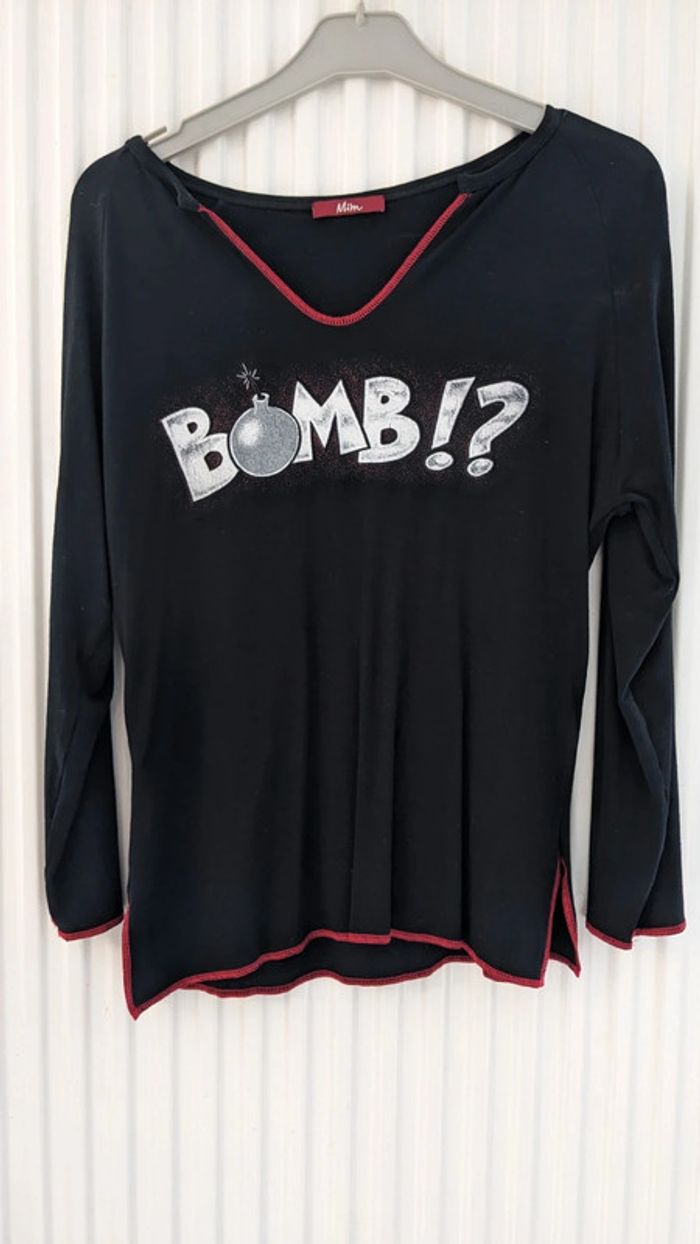 T-shirt manches longues femme marque Mim taille M / taille 38 inscription Bomb !? Super sympa avec un pantalon ou une jupe ! Comme neuf Mes autres annonces femme de même taille #joeypotter91_femmetaille38