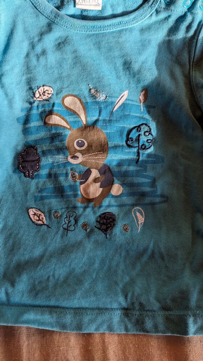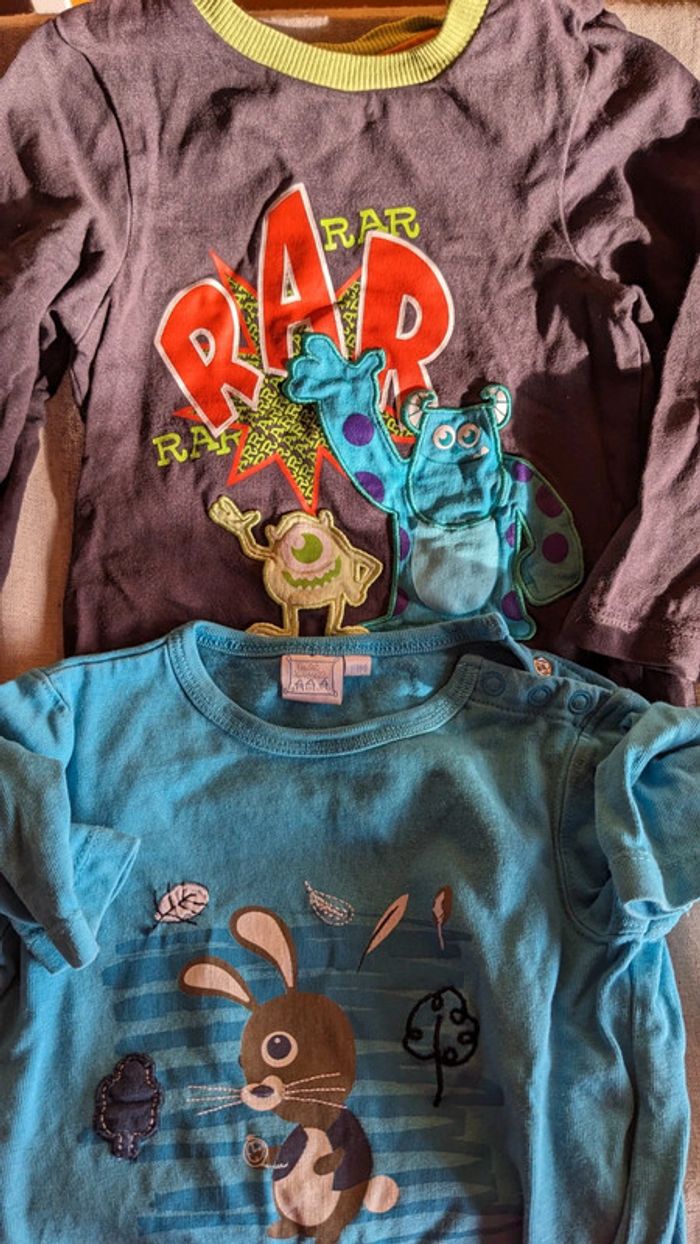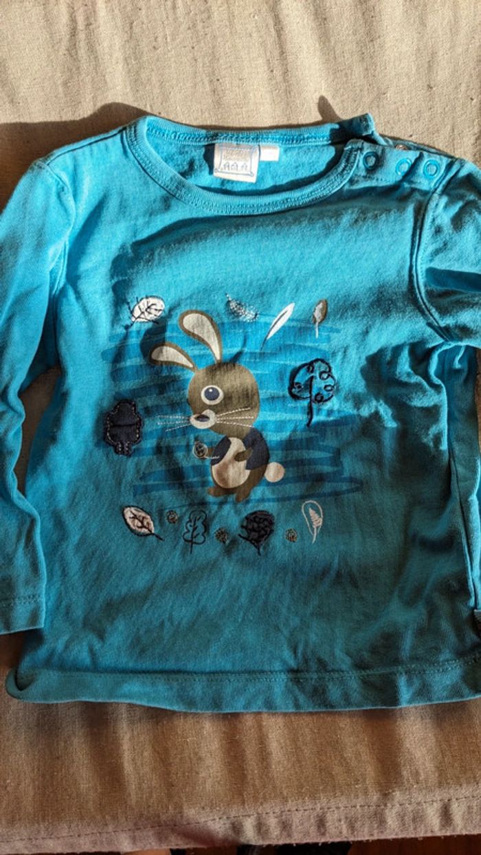 Lot de 2 t-shirts manches longues garçon taille 18 mois. Un bleu turquoise marque Cadet Rousselle motif lapin et feuilles et un Monster et compagnie marron et vert clair. Mes autres annonces du même âge #joeypotter91_garçondixhuitmois