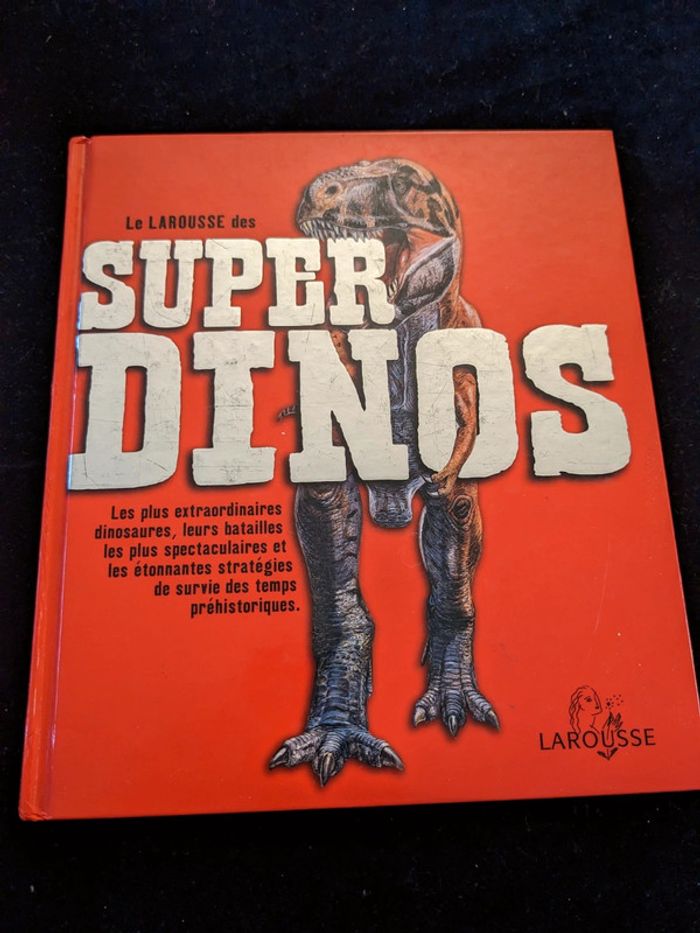 Le Larousse des super dinos Comment se passaient les grandes batailles pour la vie quand les dinosaures régnaient sur la Terre ? Quelles étaient les chances de chacun ? Comment se protégeaient-ils ? Lesquels étaient les plus rapides ? Les plus malins ? Les plus forts ? Megalosaurus ? Diplodocus ? Tricératops Ou les fameux T-Rex ? Super Dinos va permettre aux jeunes lecteurs de trouver toutes les réponses et de connaître encore mieux ces fabuleux reptiles géants. 22x25 cm 145 pages Poids 830g Mes autres annonces du même âge #joeypotter91_jeuxjouets #joeypotter91_garçonsixans #joeypotter91_garçonseptans #joeypotter91_garçonhuitans #joeypotter91_garçonneufans #joeypotter91_garçondixans #joeypotter91_fillesixans #joeypotter91_filleseptans #joeypotter91_fillehuitans #joeypotter91_filleneufans #joeypotter91_filledixans