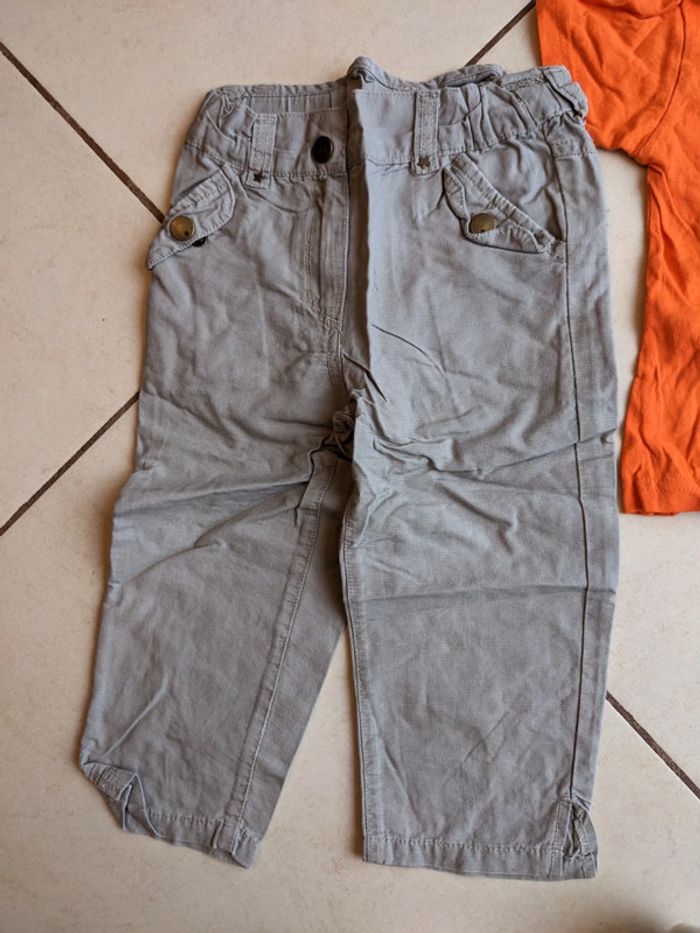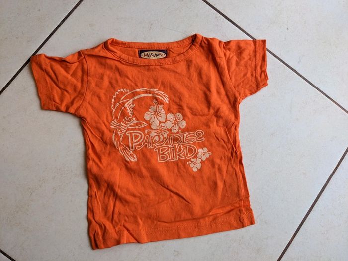 Tenue fille taille 2 ans composée d'un pantalon marque Kidkanaï avec bouton-pression fermeture éclair et taille élastique ajustable et un t-shirt manches courtes orange marque milk-shake paradise birds. Poids 180g Mes autres annonces du même âge #joeypotter91_filledeuxans [Caisse Arc-en-ciel]