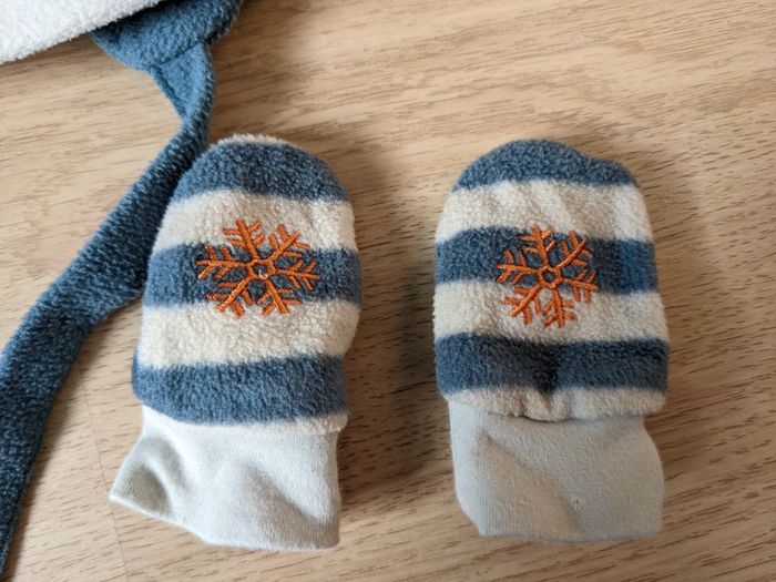 Bonnet chapeau + moufles polaire garçon 3-6 mois - photo numéro 4