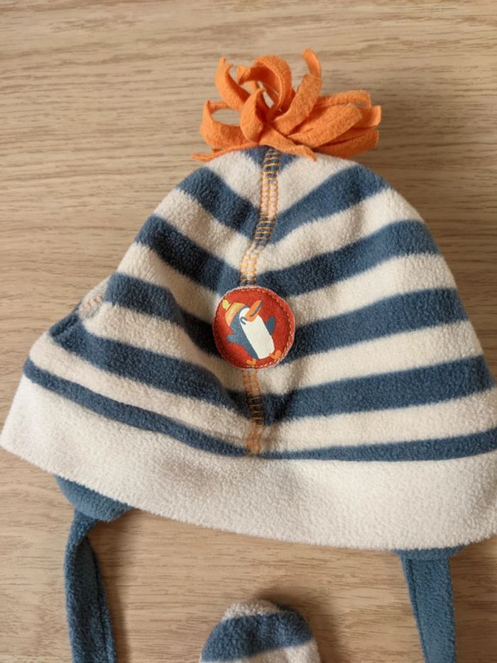 Bonnet chapeau + moufles polaire garçon 3-6 mois - photo numéro 2