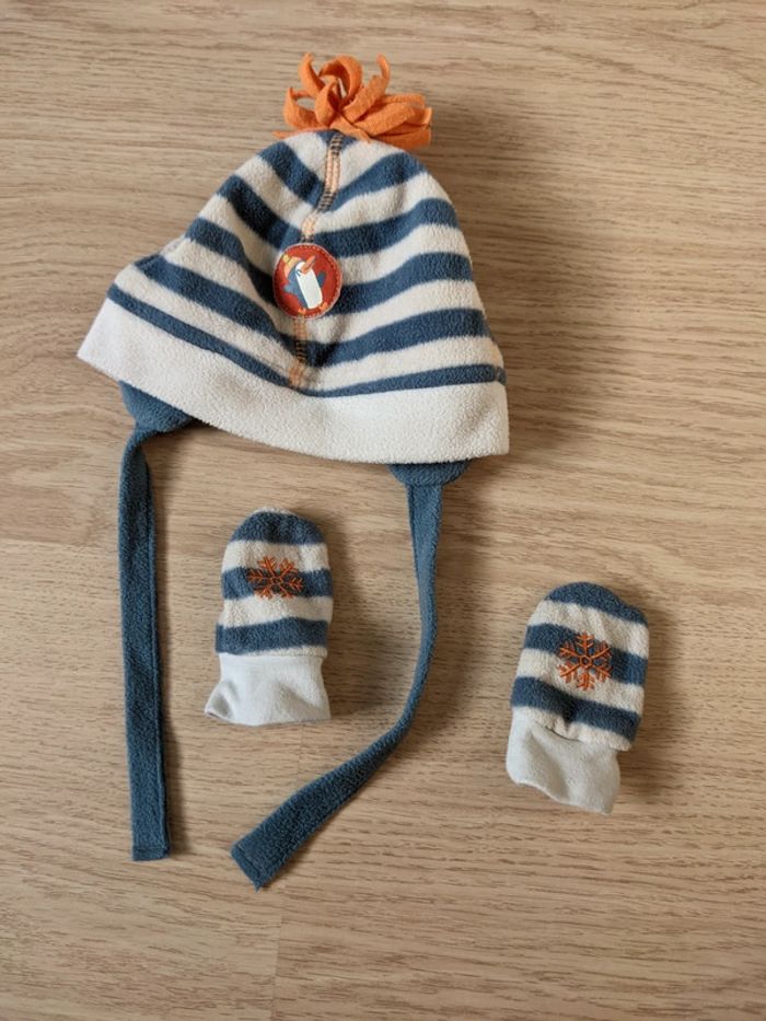 Bonnet chapeau + moufles polaire garçon 3-6 mois - photo numéro 1