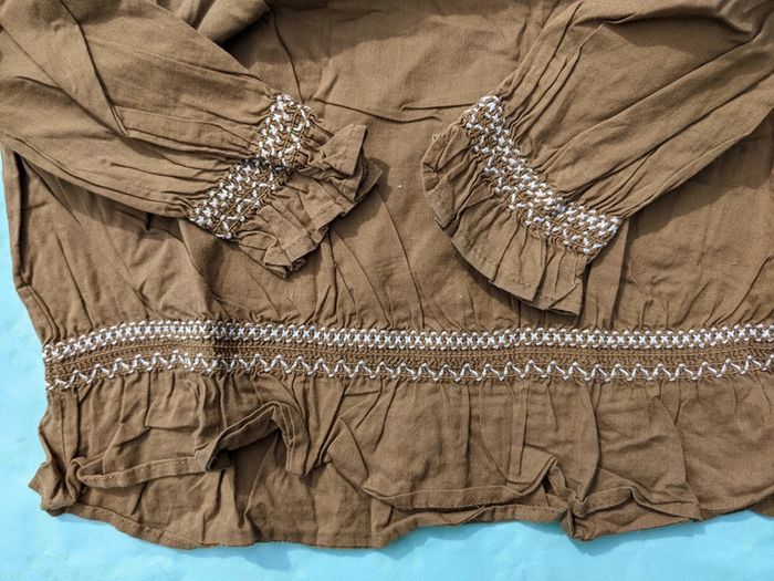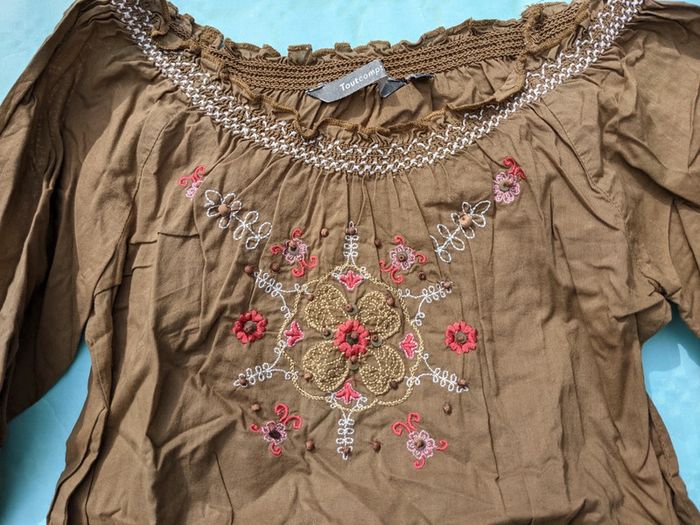 Blouse fille taille 10 ans marque Tout compte fait avec surpiqûres et perles, modèles vraiment très joli, voir photos. Juste un petit coup de fer à donner. Poids 80g Mes autres annonces du même âge #joeypotter91_filledixans [Sac Ikéa 2]