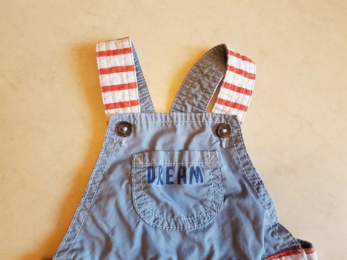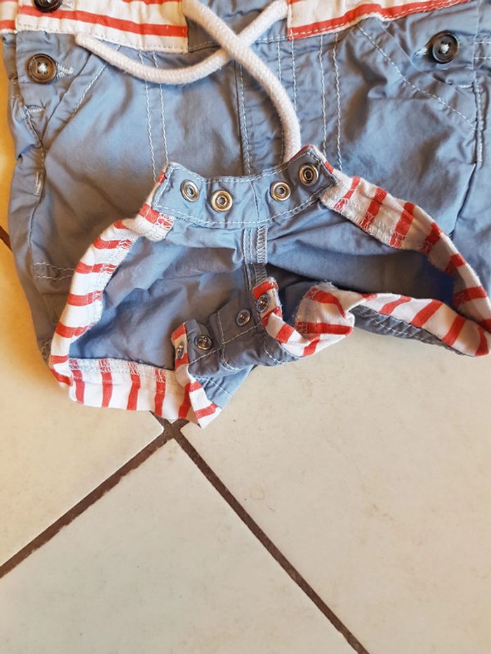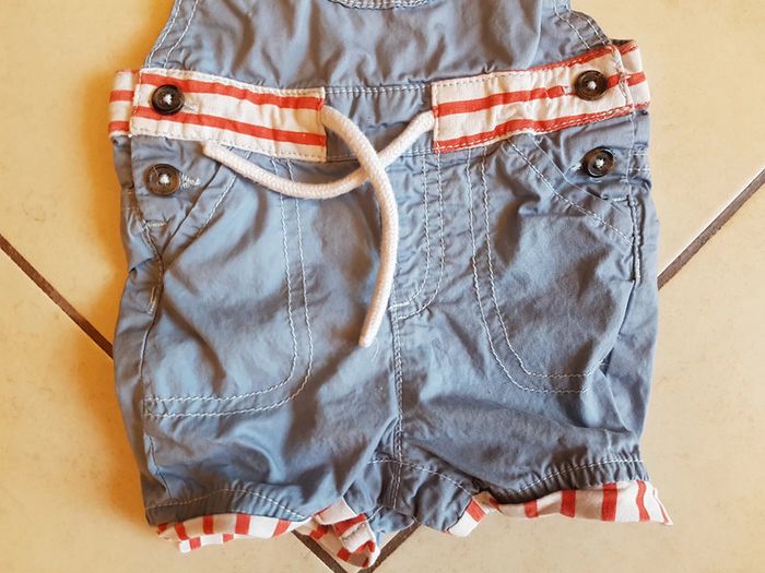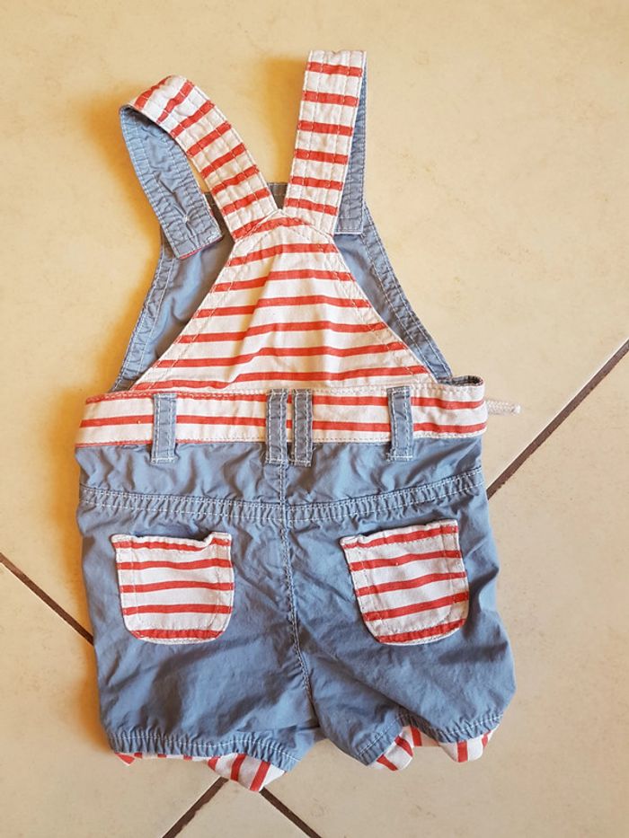 Salopette short garçon taille 6 mois avec boutons pression à l'entrejambe pour faciliter le changement de couche sans avoir besoin de tout enlever. Poids 85g Mes autres annonces de même âge #joeypotter91_garçonsixmois [Caisse bonbons]
