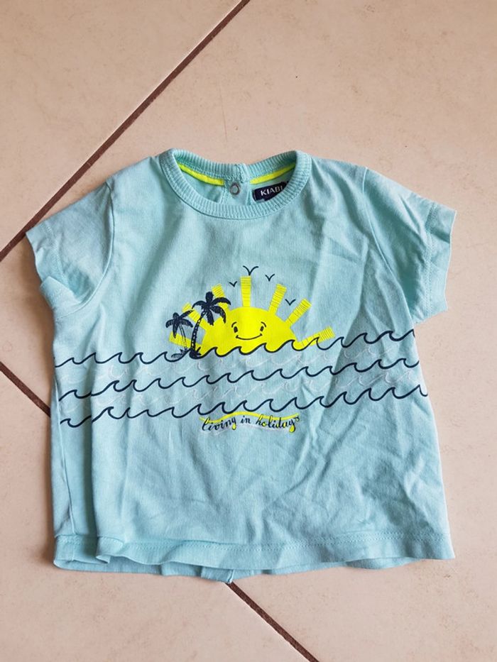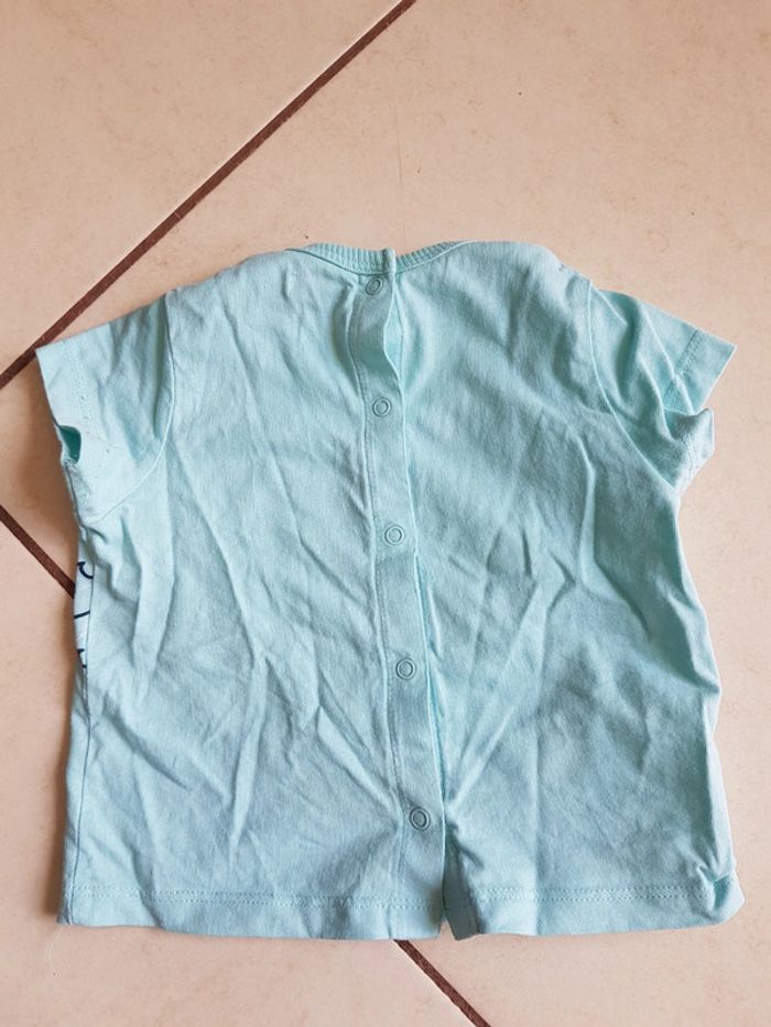 T-shirt garçon taille 6 mois marque Kiabi avec des boutons pression sur la totalité du dos pour faciliter l'enfilage sans passer par la tête. Poids 45g Mes autres annonces du même âge #joeypotter91_garçonsixmois