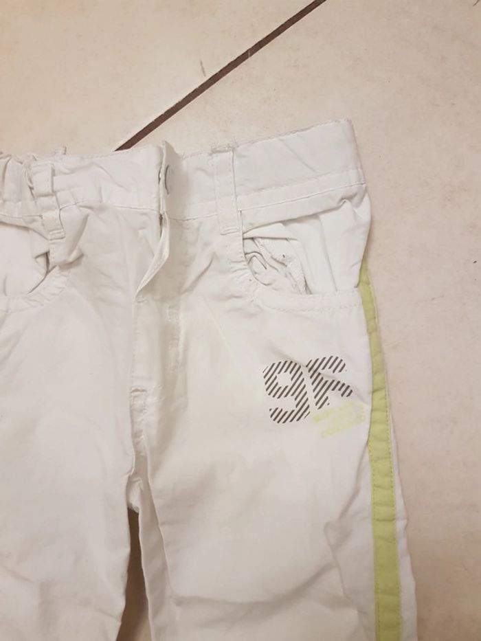 Pantalon fin garçon pour l'été taille 6 mois marque tout compte fait avec bouton pression et taille élastique ajustable, blanc avec bande menthe, deux véritables poches devant et une véritable poche derrière. Poids 70g Mes autres annonces du même âge #joeypotter91_garçonsixmois [Caisse bleue]