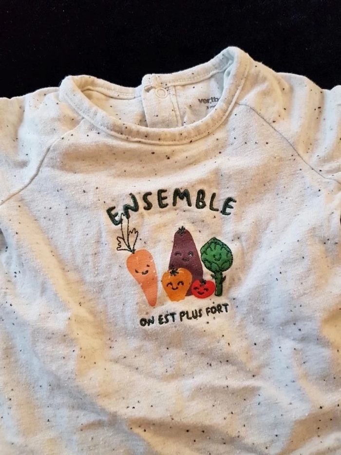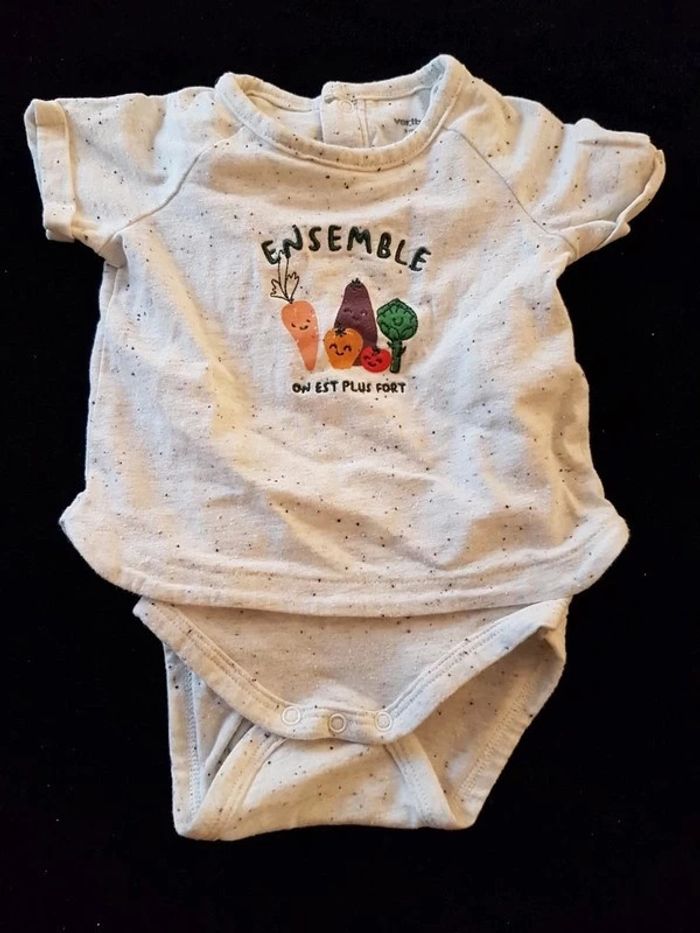 T-shirt body en une seule pièce garçon taille 3 mois marque Vertbaudet manches courtes inscription ensemble on est plus fort super mignon ! Poids 75g Mes autres annonces du même âge #joeypotter91_garçontroismois
