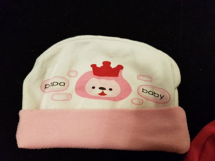 Lot de 2 bonnets fille composé d'un bonnet rose fushia et d'un bonnet rose clair et blanc inscription papa baby taille 0-3 mois Poids 30g Mes autres annonces du même âge #joeypotter91_fillenaissance #joeypotter91_filleunmois #joeypotter91_filletroismois [Caisse 2]