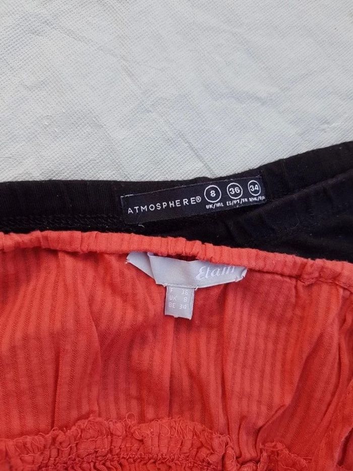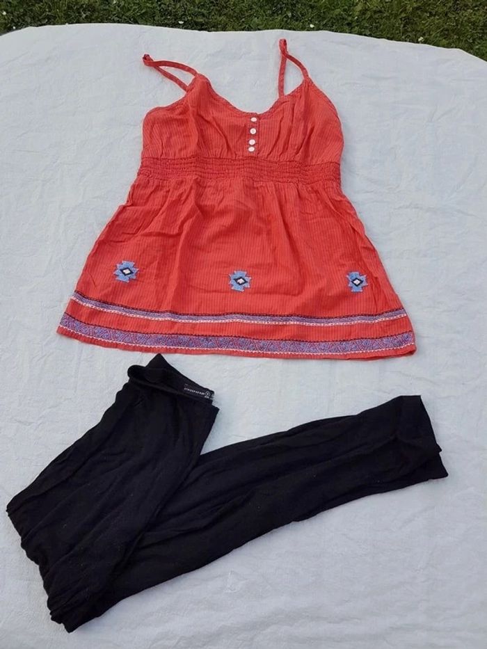 Tenue femme taille S composée d'un débardeur bretelles spaghetti marque Etam, corail avec surpiqures et d'un legging noir marque Stradivarius. 2 euros la tenue. Tout petit prix vu le prix neuf de ces vêtements en magasin ! Poids 200g Mes autres annonces de même taille #joeypotter91_femmetaille36 #joeypotter91_fillequatorzeans #joeypotter91_filleseizeans