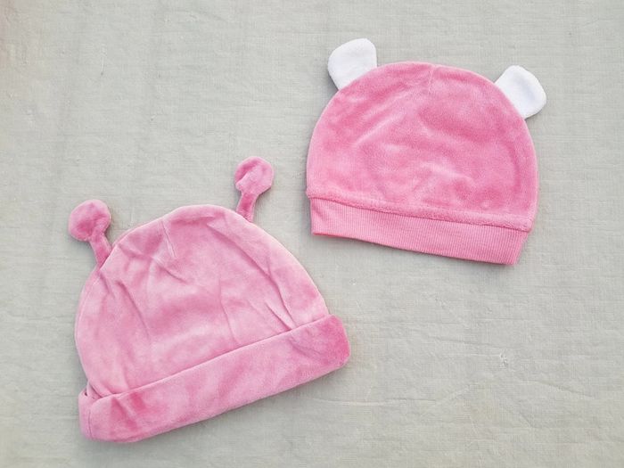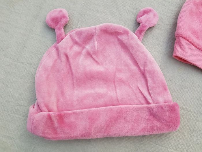 Lot de 2 chapeaux bonnets fille taille 6 mois chacun avec petites oreilles, marque Vertbaudet pour l'un, sans marque pour l'autre. Poids 65g Mes autres annonces du même âge #joeypotter91_fillesixmois [Carton 2]