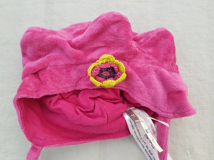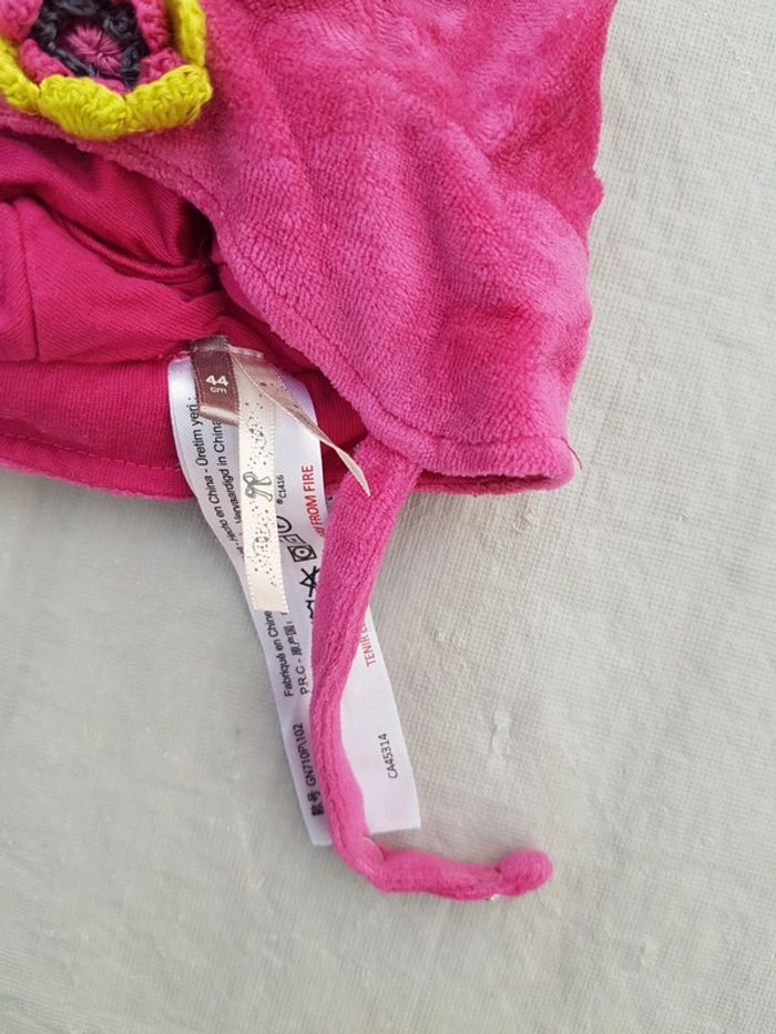Chapeau fille 44 cm avec fleur en 3D et petit lien à accrocher sous le menton pour maintenir le chapeau en place avec 2 bouton-pression marque orchestra. 44 cm = entre 6 et 12 mois en général Poids 45g Mes autres annonces du même âge #joeypotter91_fillesixmois #joeypotter91_filleneufmois #joeypotter91_filledouzemois [Carton 2]