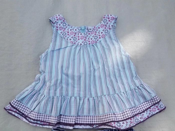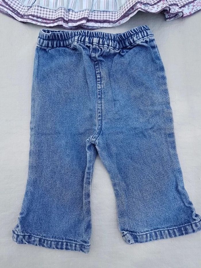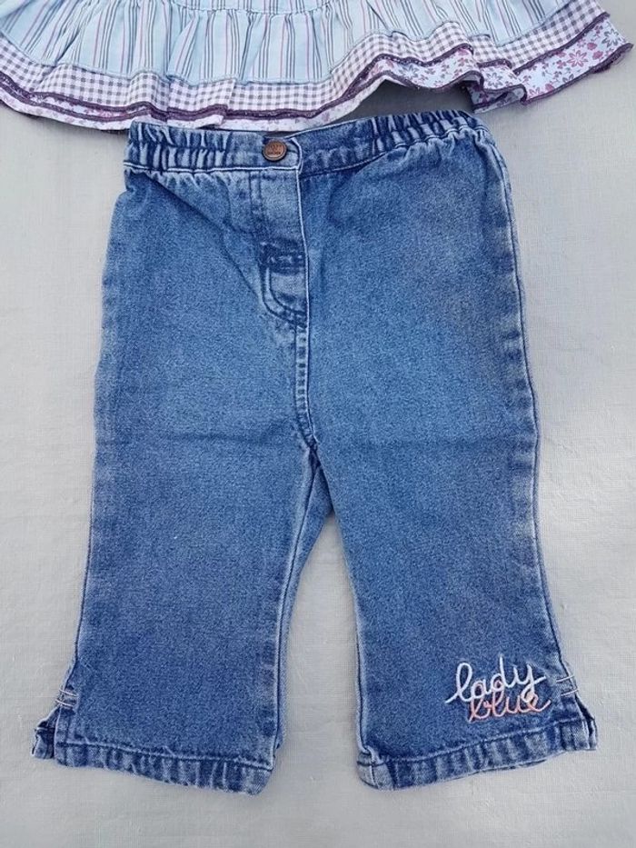 Tenue fille taille 6 mois composée d'un jean bouton-pression + taille élastique marque babywear tex, inscription en surpiqûres en bas de la jambe gauche Lady blue et un joli haut débardeur avec fermeture éclair bleu turquoise rose blanc qui s'harmonise parfaitement avec le jean. Poids 165g Mes autres annonces du même âge #joeypotter91_fillesixmois [Grande caisse]