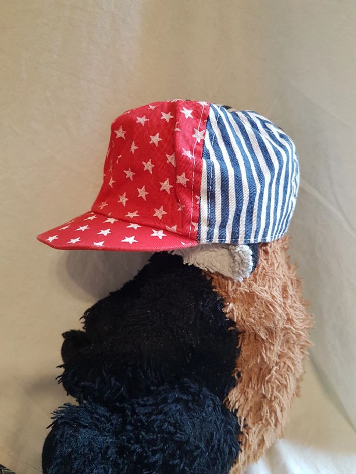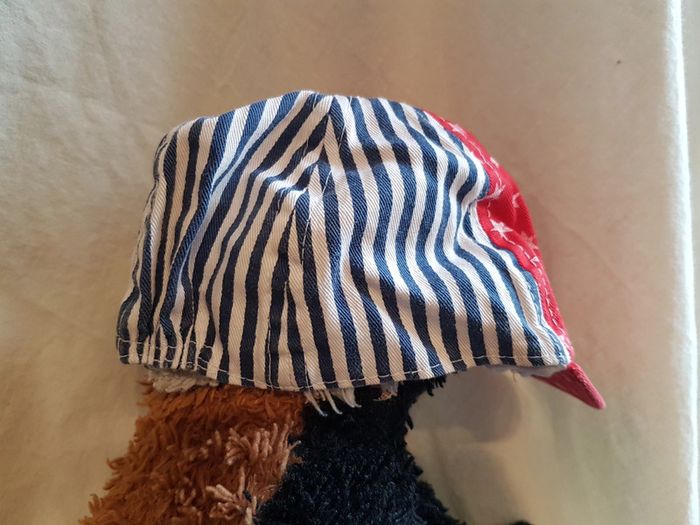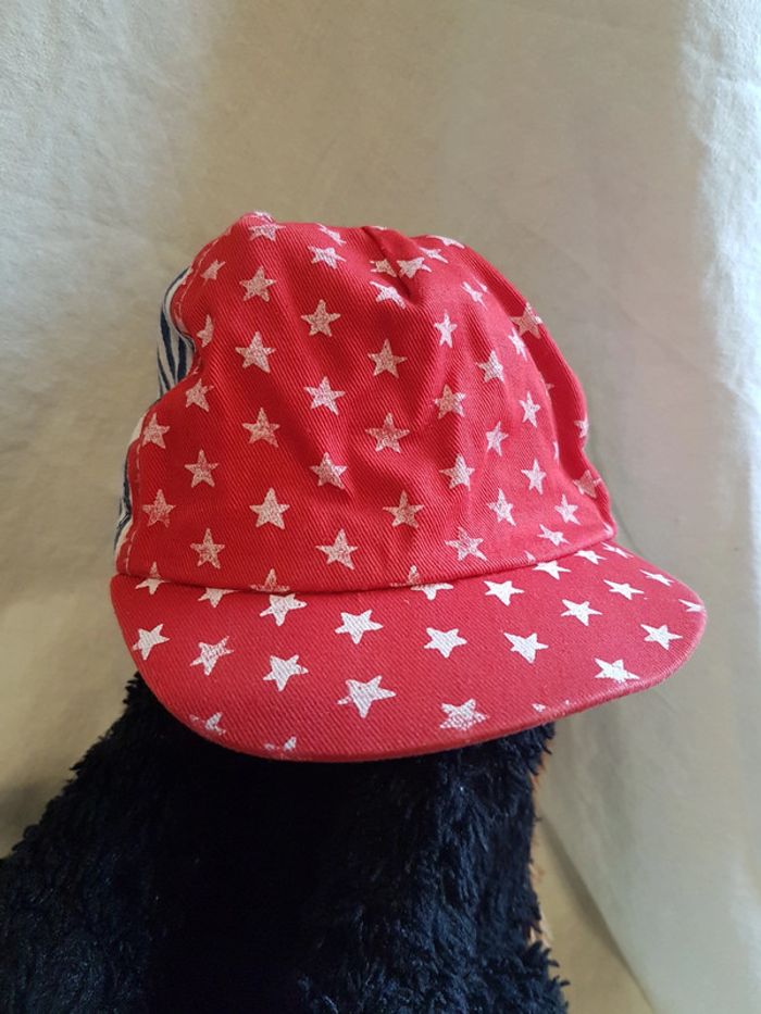 Casquette garçon type drapeau américain : une partie étoiles blanches sur fond rouge et une autre rayures bleues sur fond blanc. 47 cm de tour de tête correspondant à 6-12 mois Poids 25g Mes autres annonces du même âge #joeypotter91_garçonsixmois #joeypotter91_garçonneufmois #joeypotter91_garçondouzemois