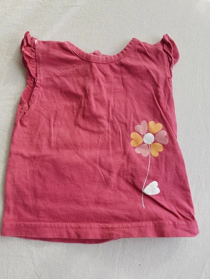 T-shirt fille taille 6 mois dessin fleur dont les pétales sont en cœur et la feuille également 2 bouton-pression dans le dos pour faciliter l'enfilage, 100 % coton. Je donne avec un deuxième haut motif fleurs et un petit pantalon rose marque DPAM qui a bien servi mais pourra encore reprendre du service. Poids 165g Mes autres annonces pour le même âge : #joeypotter91_fillesixmois [Caisse grise]