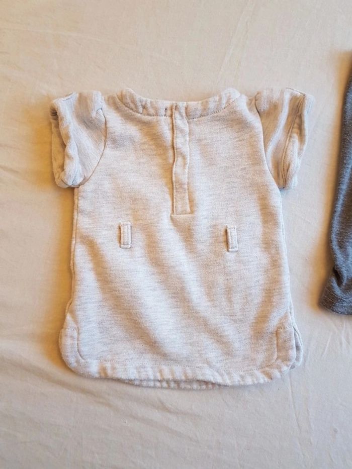 Robe fille taille 3 mois marque Kiabi gris chiné avec deux véritables poches en forme de cœur et des boutons pression dans le dos pour faciliter l'enfilage. Je donne avec un petit legging gris foncé avec boutons décoratifs en bas. Poids 130g Mes autres annonces pour le même âge : #joeypotter91_filletroismois