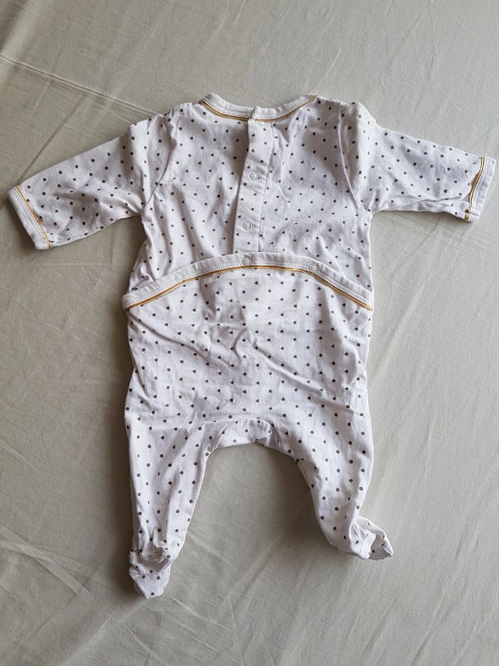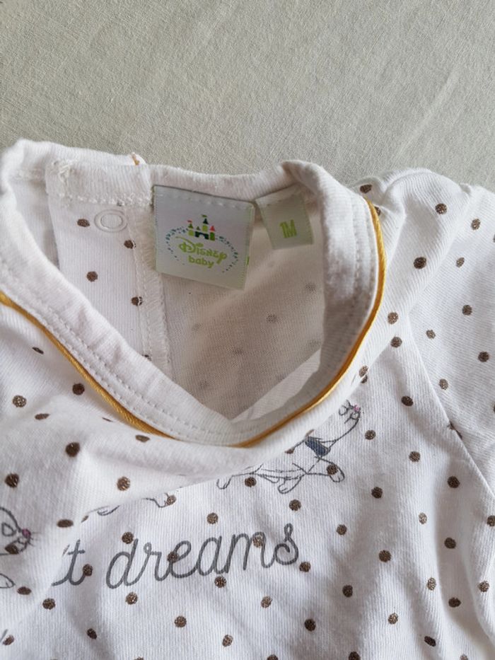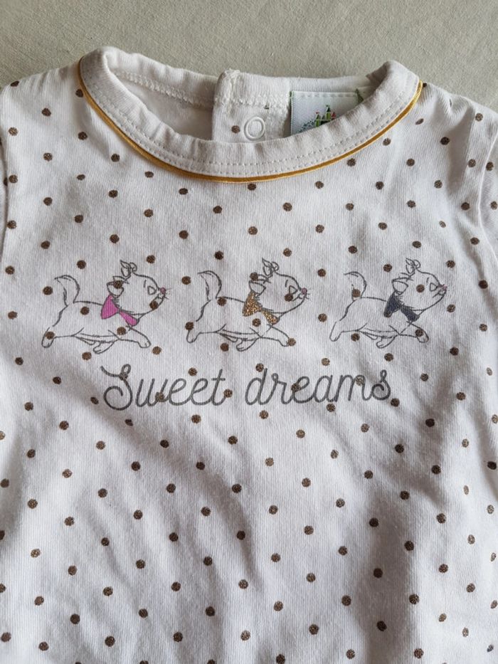 Pyjama fille à l'effigie de Marie des Aristochats marque Disney Baby taille 1 mois blanc avec pois dorés, inscription Sweet dreams rendu très joli ! 1,50 euro. Tout petit prix vu le prix neuf de ce vêtement en magasin. Poids 80g #joeypotter91_fillenaissance #joeypotter91_filleunmois