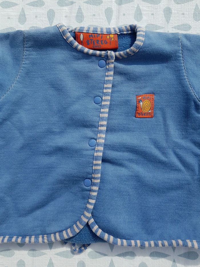 Gilet garçon taille 6 mois marque Mini Stereg, fermeture par boutons pression, lien à l'arrière comme si c'était la queue des escargots à nouer. #joeypotter91_garçonsixmois Poids = 115 g