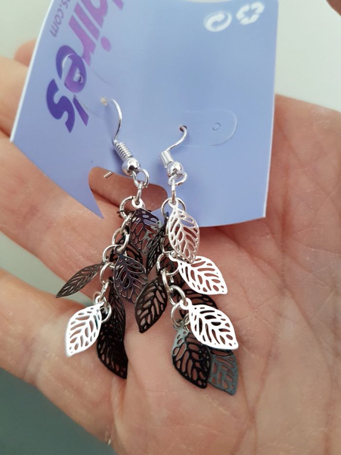 Boucles d'oreilles femme neuve motif feuilles - photo numéro 2