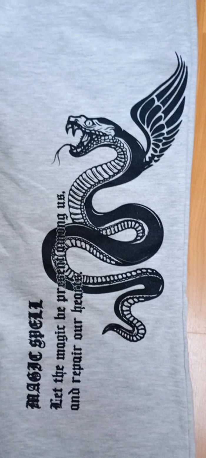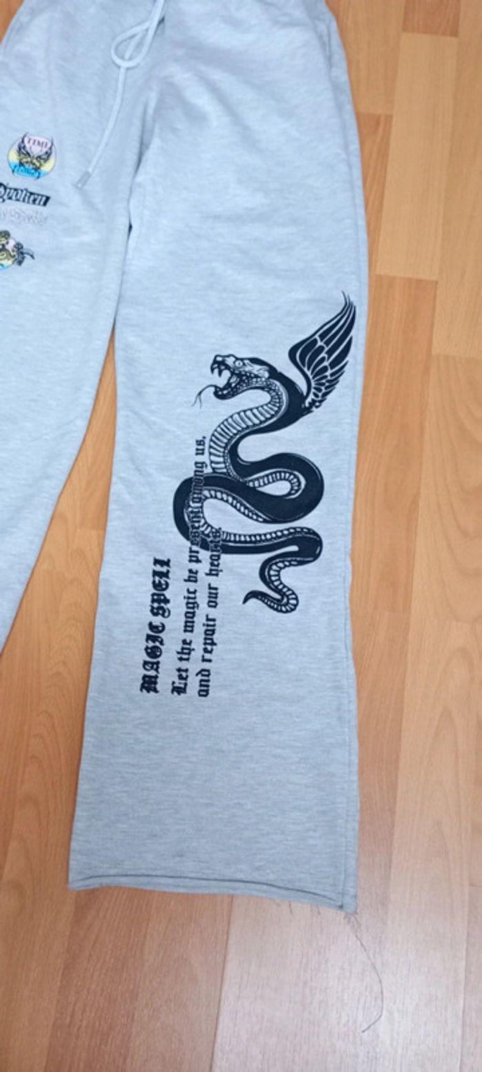Neuf Gris, jambes larges avec motifs Dragons 🐲🐉 50 coton 50 polyester Super stylé mais je suis trop trop petite et le pantalon est long