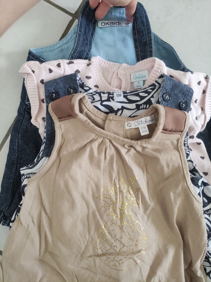 Très peu porté #lot #robes #manchescourtes #bleu #rose #blanc #marron #jean #12mois #1an #kimbaloo #kitchoun #okaidi