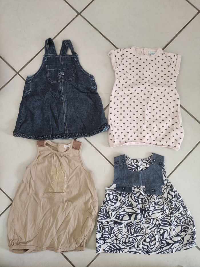 Lot de 4 robes manches courtes fille 12 mois - photo numéro 1