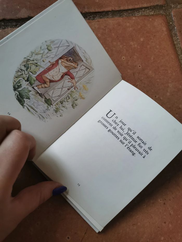 Beatrix Potter, mini-livre Jérémie Pêche-à-la-ligne, éd. Gallimard, 1980, 58p., 94g. Le livre de collection est en très bon état, vinatge, couverture rigide, format relié. Pensez à faire des lots afin de bénéficier des remises que j'ai régulièrement sur ma page. #beatrixpotter #jeremiepechealaligne #gallimard #livredecollection