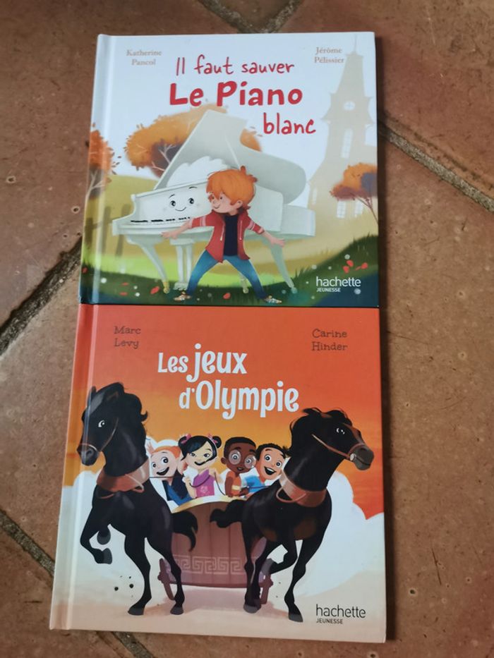 Lot de 2 livres neufs Hachette jeunesse, le lot comprend : 1. Les jeux d'Olumpie, Marc Levy et Carine Hinder, 2018. 2. Il faut sauver le piano blanc, Katherine Pancol et Jérôme Pélissier, 2019. Poids du lot 224g. Pensez à faire des lots afin de bénéficier des remises que j'ai régulièrement sur ma page. #lotdelivres #hachettejeunesse #petitslivres #marclevy #carinehinder #katherinepancol #jeromepelissier #livresneufs
