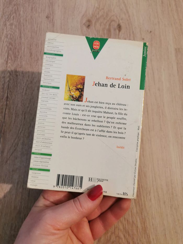 Jehan de Loin, Bertrand Solet, livre de poche jeunesse, éd. Hachette jeunesse, 1998, 154p., 110g. Livre est en bon état général, signé à la première page, la couverture est marquée. Pensez à faire des lots afin de bénéficier des remises que j'ai régulièrement sur ma page. #jehandeloin #bertrandsolet #hachettejeunesse