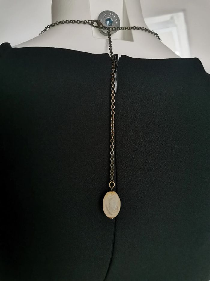 Sautoir de perles noir et rouge chaînette en métal - photo numéro 4