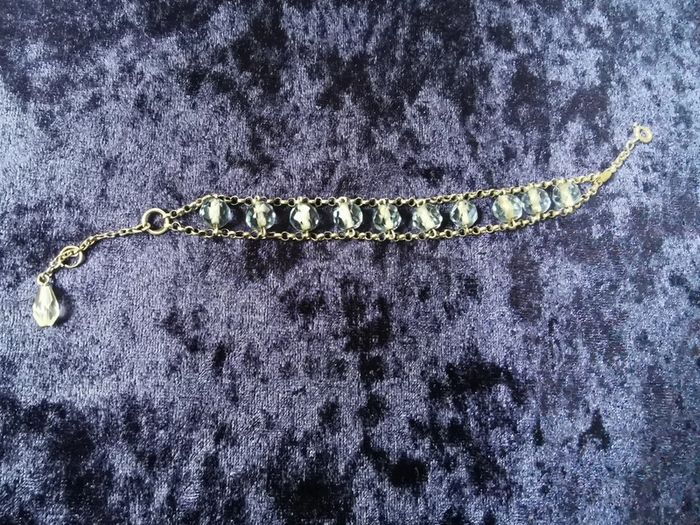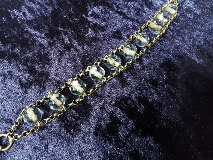 Bracelet de perles bleues transparentes à facettes, montées sur la chaînnette argentée. Bracelet à rallonge, en très bon état, longueur totale 20 cm, poids 9g. Pensez à faire des lots afin de bénéficier des remises que j'ai régulièrement sur ma page. #braceletbleu #braceletdeperles
