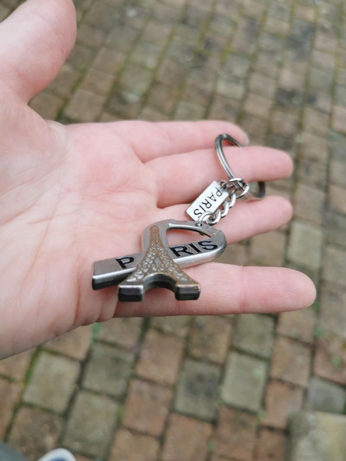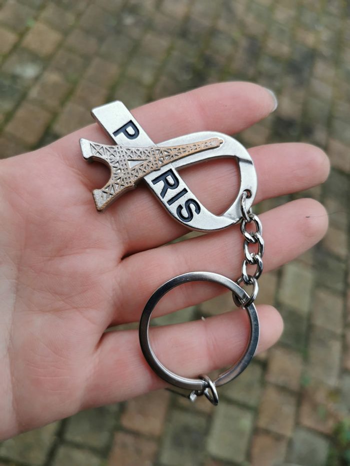 Porte-clés Paris en métal argenté et doré, en très bon état général, taille 5x2,7 cm, poids 26g. Pensez à faire des lots afin de bénéficier des remises que j'ai régulièrement sur ma page. #paris #porteclesparis #porteclefs