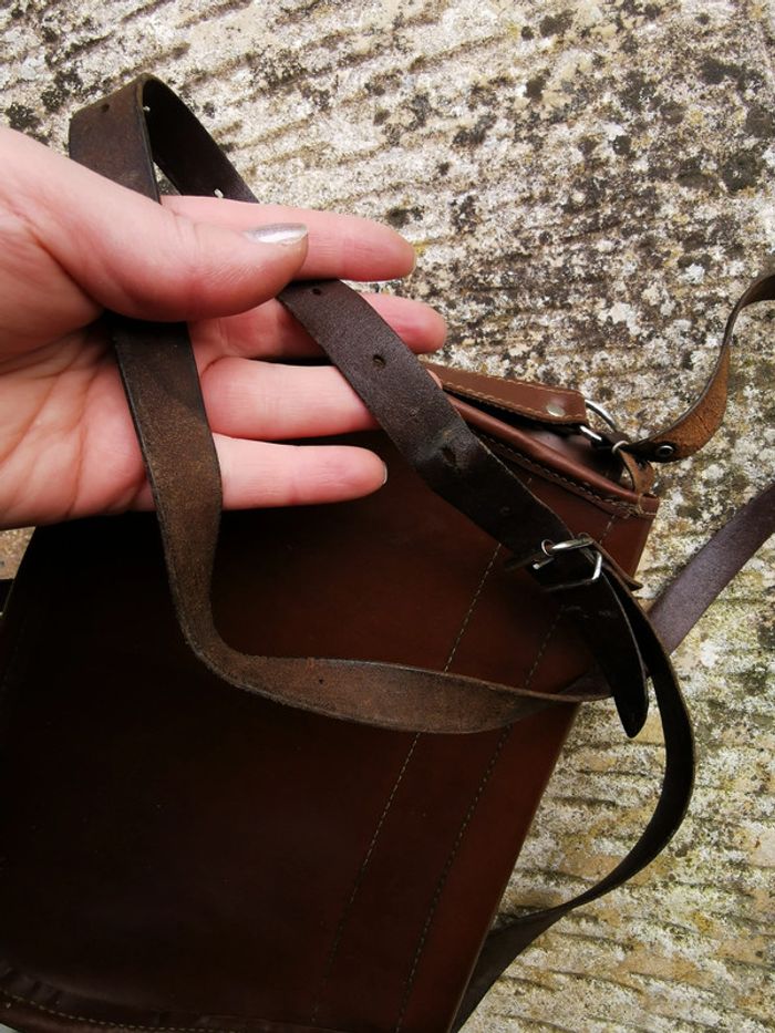 Sac à main à bandoulière en cuir marron vintage - photo numéro 8