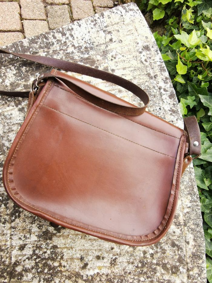 Sac à main à bandoulière en cuir marron vintage - photo numéro 2