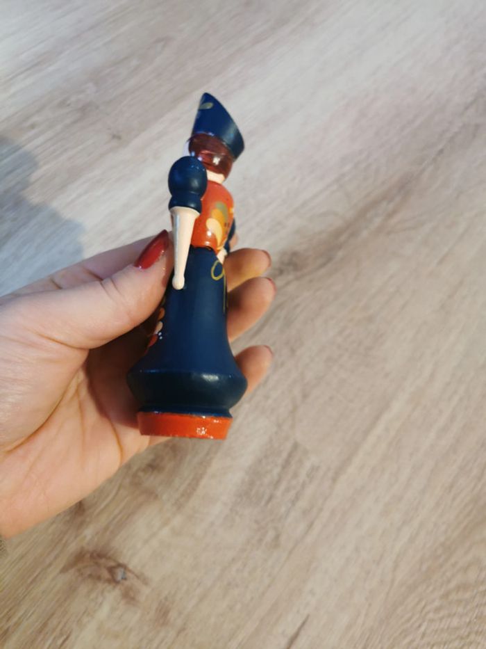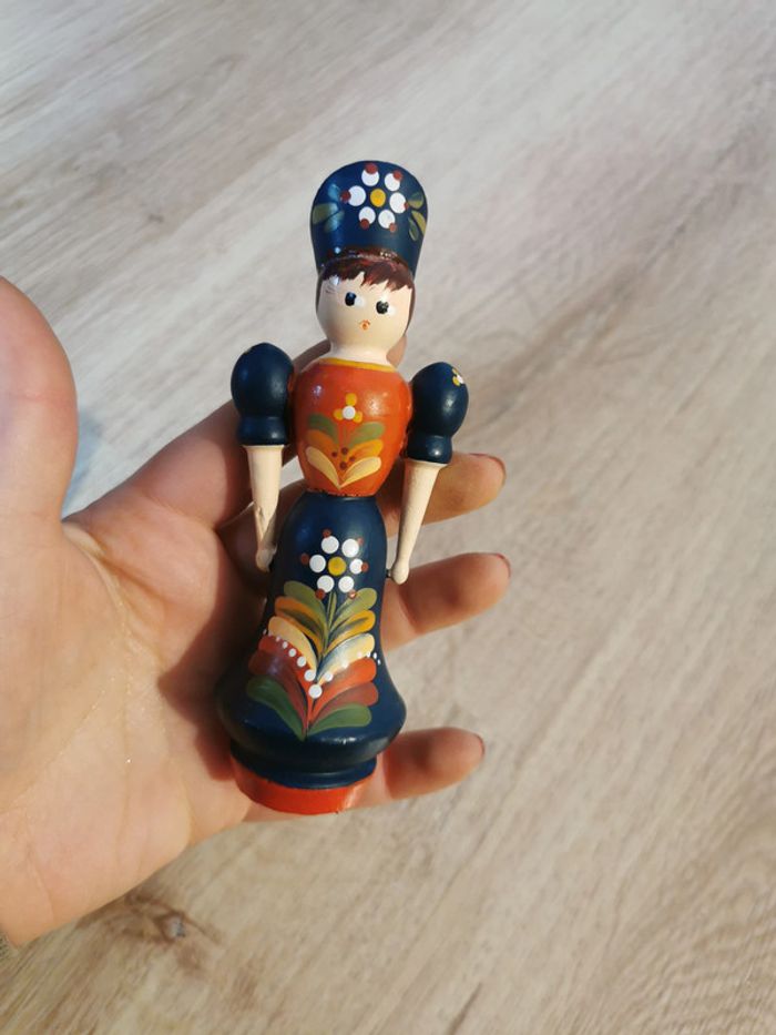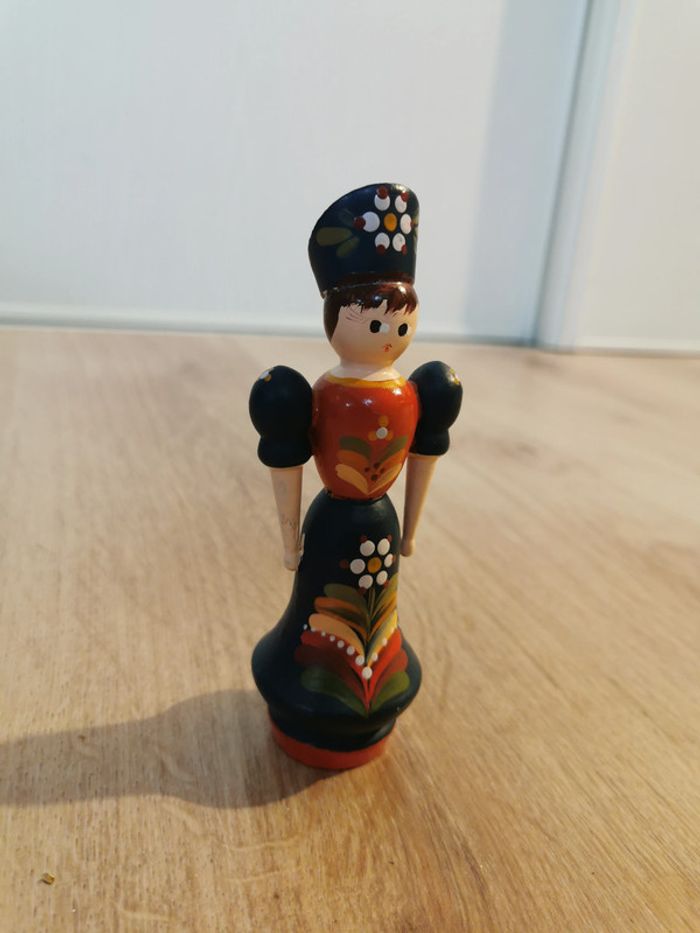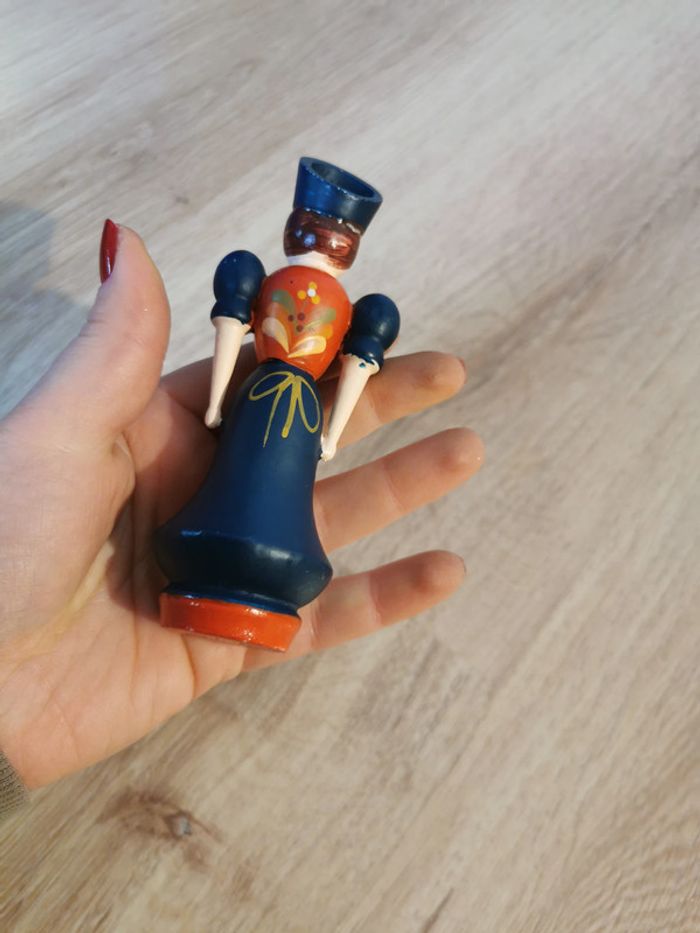 Figurine en bois vintage art populaire hongrois peinte à la main  femme chapeau floral - photo numéro 7