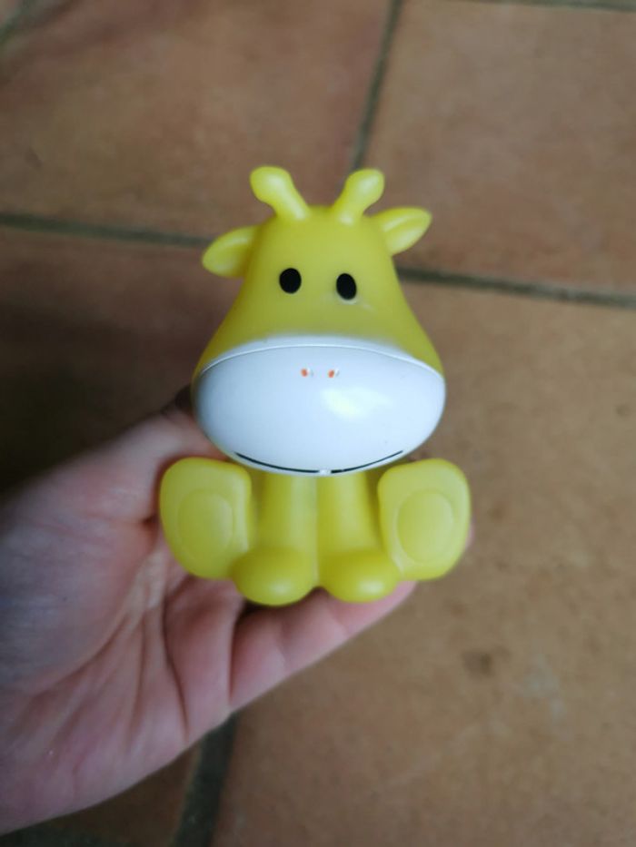 Animal Jouet lumineux de bain, petit girafe jaune en très bon état, marque Auchan, taille 9 cm environ, poids 54g. Pensez à faire des lots afin de bénéficier des remises que j'ai régulièrement sur ma page. #jouetdebain #girafedebain #jouetlumineux