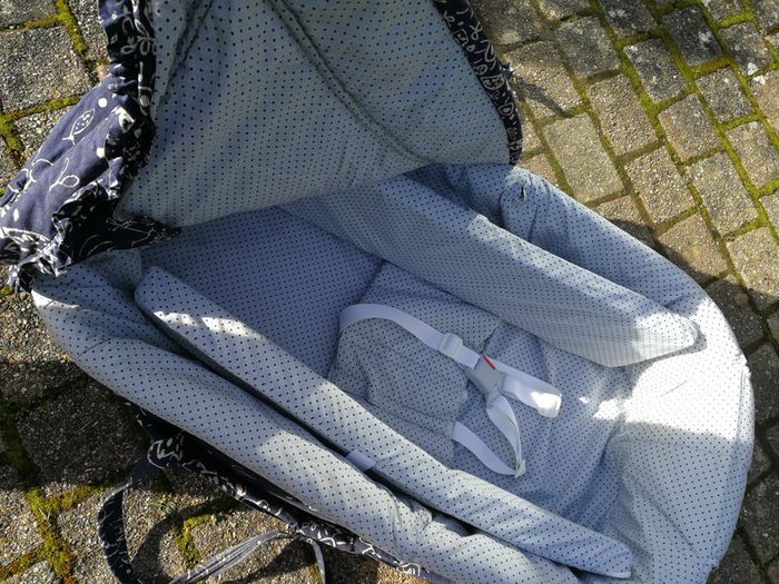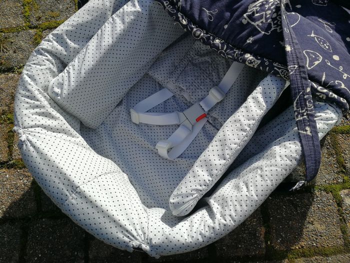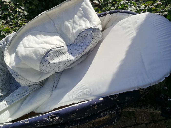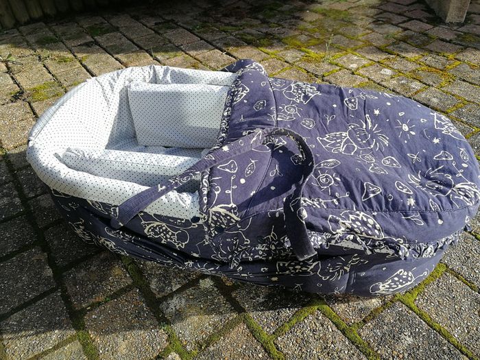 Nacelle bleu marine à motifs blancs fashion, en très bon état, juste le polistyrène qui fait partie du rembourrage est cassé en deux parties dans un des coussins. Dimensions : Longueur : 83 cm Largeur : 38 cm Hauteur : 23 cm Poids : 4,9kg Pensez à faire des lots afin de bénéficier des remises que j'ai régulièrement sur ma page. #nacellebebe #nacellebleumarine #nacellecoton