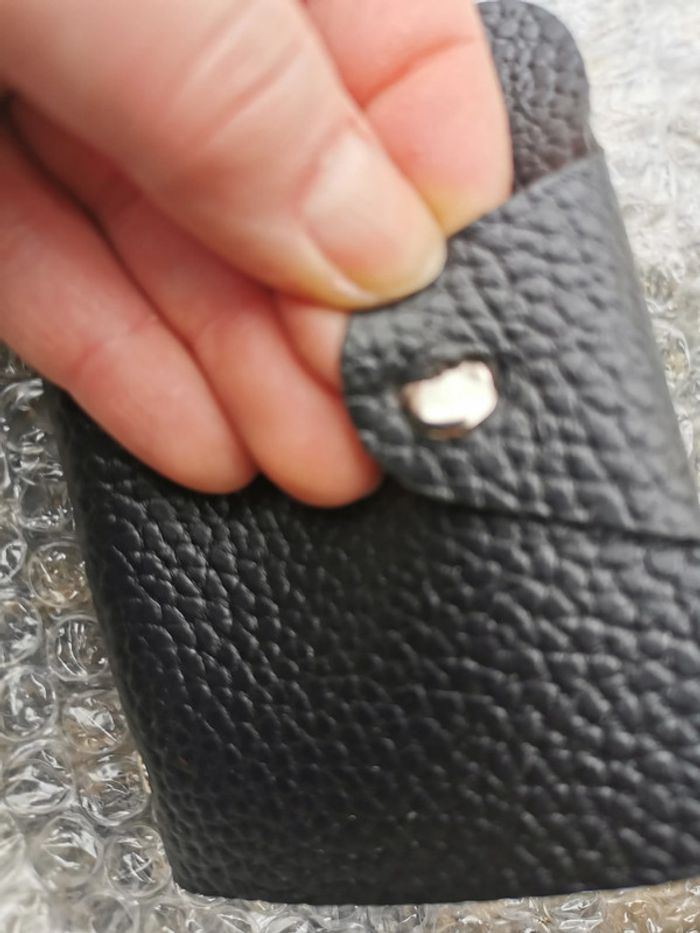 Ensemble trousse et pochette à cartes noirs, en très bon état, juste sur le pochette à carte le bouton pression se détache (tombe), l'ensemble n'est pas dissociable et est en simili cuir grainé, pochette comprend 6 feuillets transparents pour ranger les cartes, la trousse se ferme par une fermeture éclair. La taille de la pochette à cartes 10,5x7,5 cm, la taille de la trousse 17x20x6 cm, poids du lot fait 89 g #pochettenoire #troussenoire #rangecartes