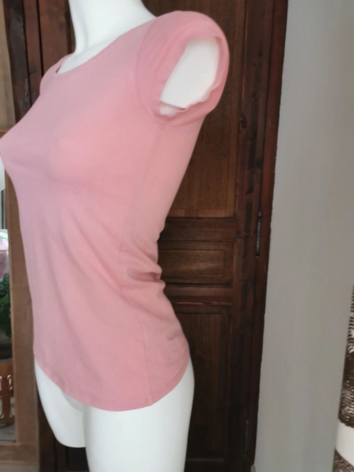 T-shirt rose manches courtes femme, marque Clokhouse Basics, taille M, en très bon état, composition 95% coton, 5% élasthanne. Mesures : Longueur : 58 cm Longueur manche depuis l'aisselle : 2 cm Longueur manche depuis l'épaule : 9,5 cm Largeur dos entre les épaules : 33 cm Largeur dos entre les aisselles : 35 cm Largeur taille : 35 cm Poids : 45g *Mannequin fait la taille 36 #tshirtrose #tshirtmanchescourtes #tshirtfemme #tshirtclockhouse #tshirttaillem