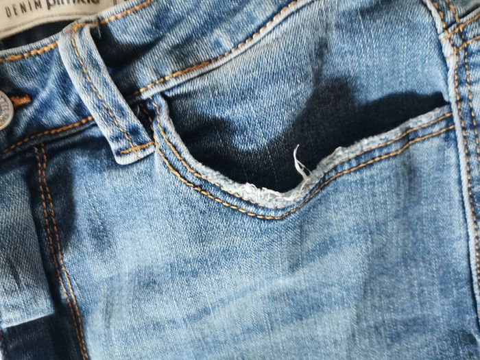 Short bleu en jeans, marque Denim Pimkie, taille 38, composition 72% coton, 23% polyester, 3% viscose, 2% élasthanne, en bon état, sur le dessus des poches les fils effilochés. Mesures : Longueur jambe depuis la taille : 33 cm Longueur jambe depuis l'entrejambe : 7,5 cm Tour entrejambe : 68 cm Largeur taille : 36 cm Largeur hanches : 43 cm Largeur cuisse : 27 cm Poids : 253g Pensez à faire des lots afin de bénéficier des remises que j'ai régulièrement sur ma page. #shortjeans #shortbleu #shortdenimpimkie #shorttaille38