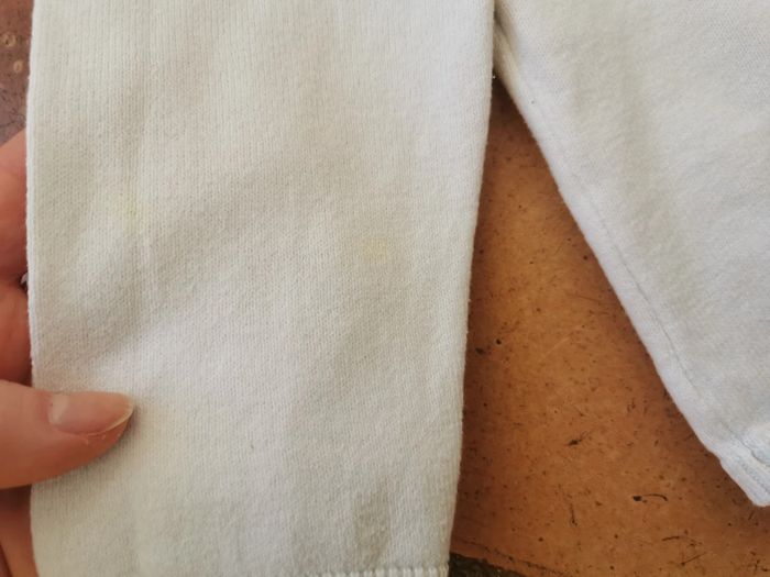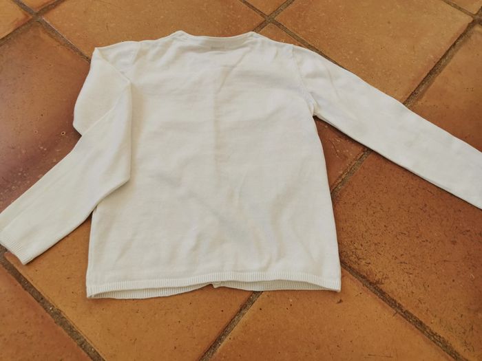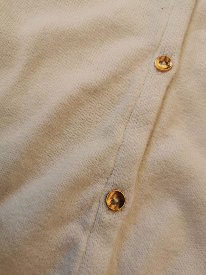 3. Gilet blanc à boutons dorés, manches longues, taille 10 ans/138-143 cm, marque Kiabi, taché sur les manches. Mesures :