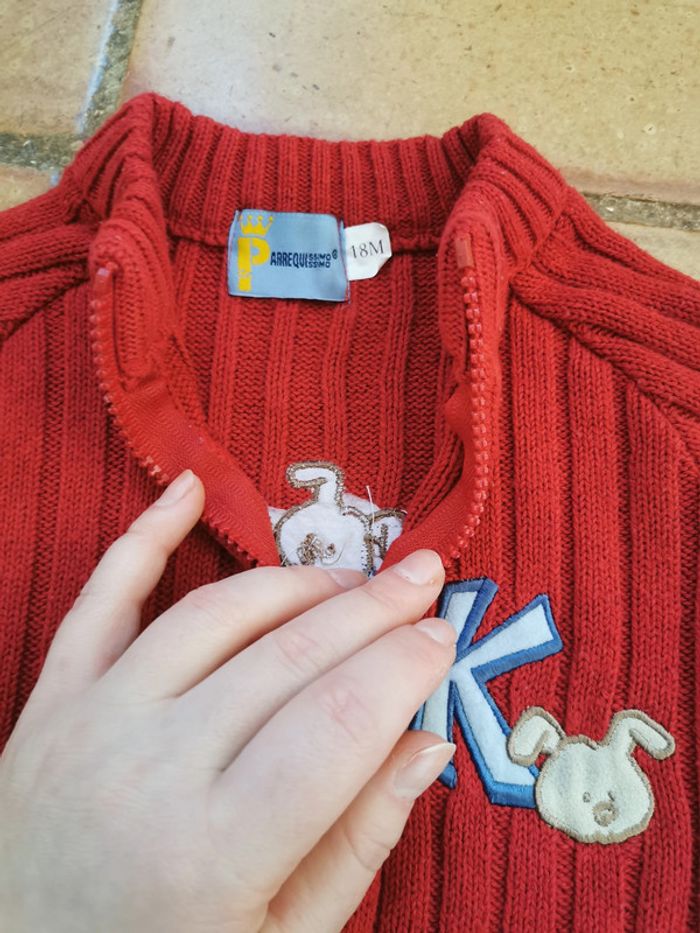 Lot de 2 gilets zipés 12-18 mois, en bon état général, le lot n'est pas dissociable et cmprend : 1. Gilet rouge à zip en tricot, manches longues raglan, taille 18 mois, marque Parquissimo, composition : 50% acrylique, 50% coton. Mesures : Longueur : 32 cm Longueur manche depuis les aisselles : 23 cm Longueur manches depuis les épaules : 34 cm Largeur dos entre les épaules : 25 cm Largeur dos entre les aisselles : 31 cm 2. Gilet gris chiné tricot, à manches longues, fermeture à zip, marque o'kids Vertbaudet, taille 12 mois/74 cm, composition 100% coton. Mesures : Longueur manches depuis les aisselles : 16 cm Longeuer manches depuis l'épaule: 25 cm Largeur dos entre les aisselles : 30 cm Largeur dos entre les épaules : 27 cm Poids du lot 440 g. Pensez à faire des lots afin de bénéficier des remises que j'ai régulièrement sur ma page. #lotbebe #vetementsbebe #giletbebe "verbaudet #bebe18mois #bebe12mois