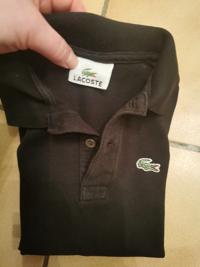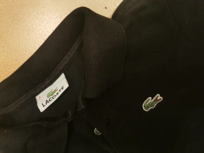 T-shirt polo noir pour enfant 6 ans, avec crocodile, manches courtes, en coton, en très bon état général, la couleur s'est légérement effacée. Poids 119g. Pensez à faire des lots afin de bénéficier des remises que j'ai régulièrement sur ma page. #polonoir #polomanchescourtes #tshirtnoir