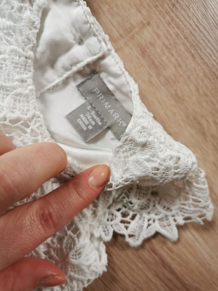 Robe blanche dentelle pour bébé 6-9 mois/ 74 cm, en très bon état, manches courtes, marque Primark, poids 126g. Pensez à faire des lots afin de bénéficier des remises que j'ai régulièrement sur ma page. #robeblanche #robebebe9mois #robebebe6mois #robedentelle #robedentellebebe #robeprimark