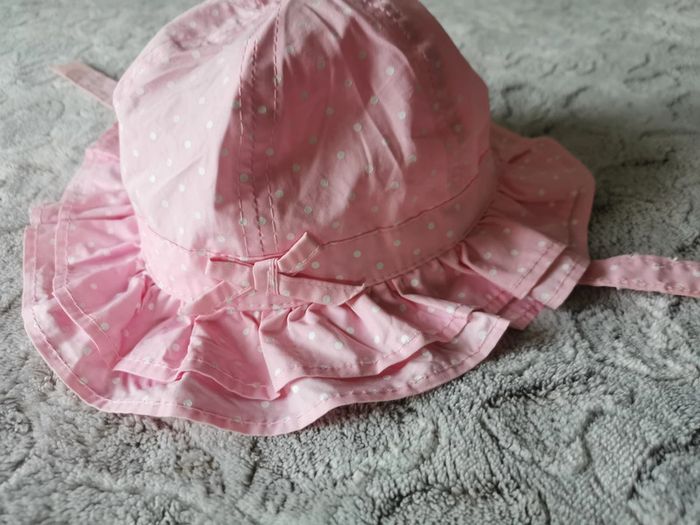 Chapeau rose à pois blanc en coton bébé t48 cm - photo numéro 2
